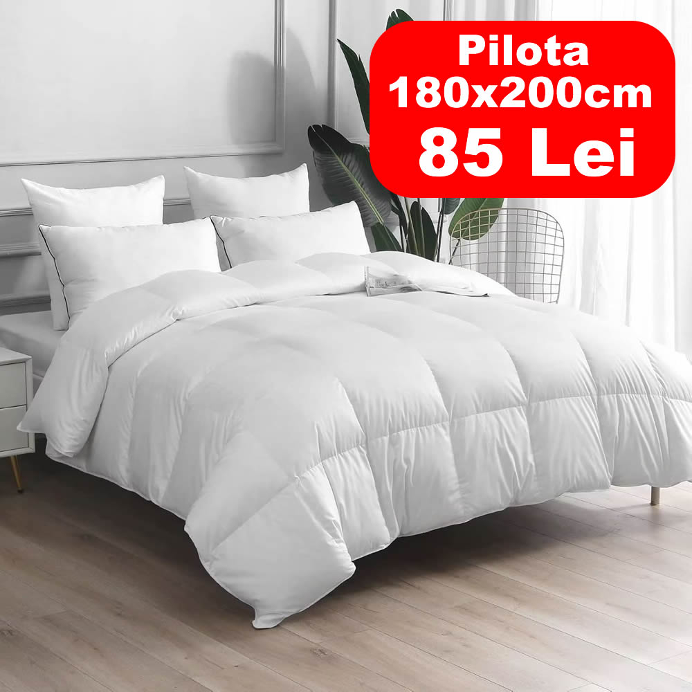 Umplutura din puf siliconizat de 200 g/m² oferă o senzație aerisită, menținând temperatura echilibrată în orice perioadă a anului.