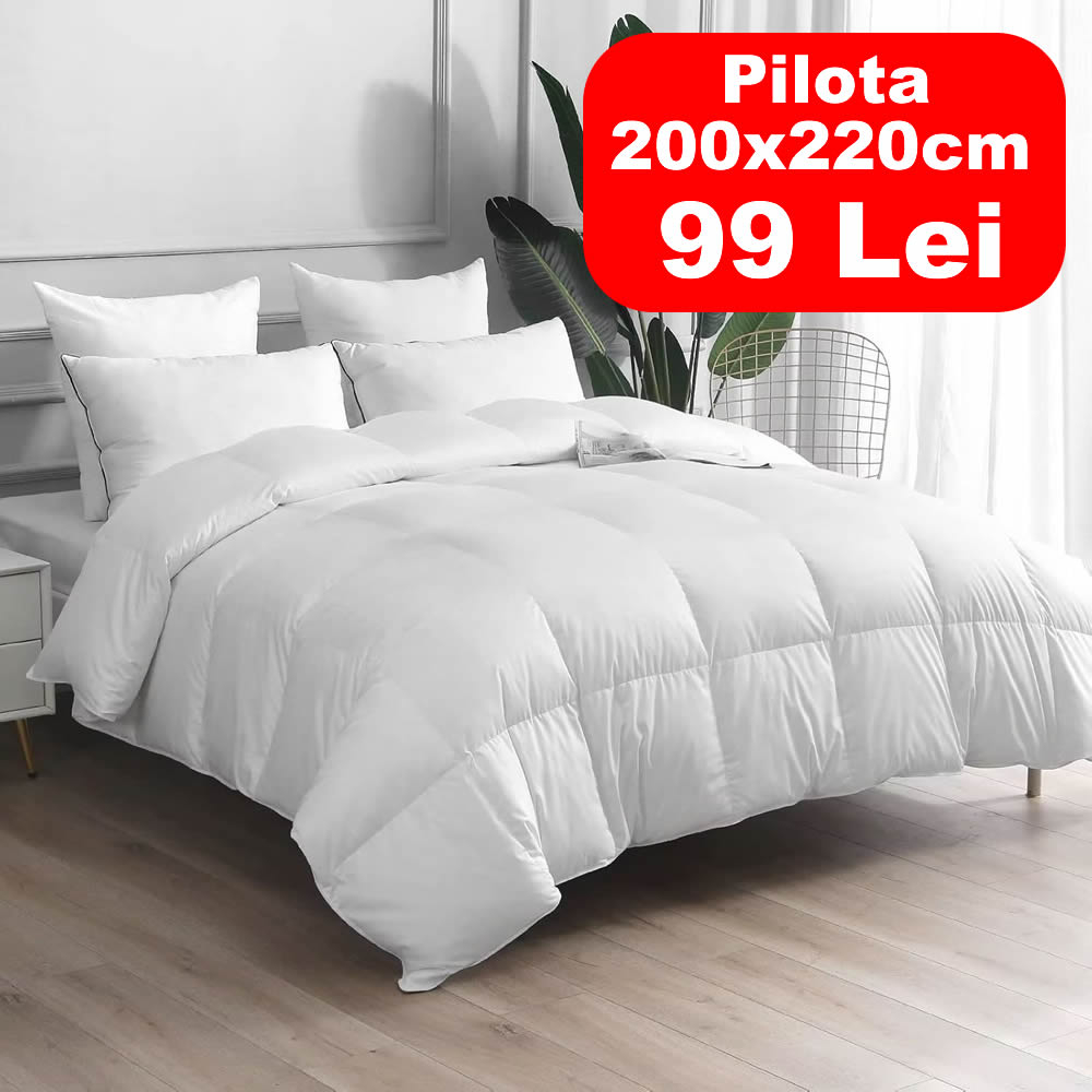Umplutura din puf siliconizat de 200 g/m² oferă o senzație aerisită, menținând temperatura echilibrată în orice perioadă a anului.